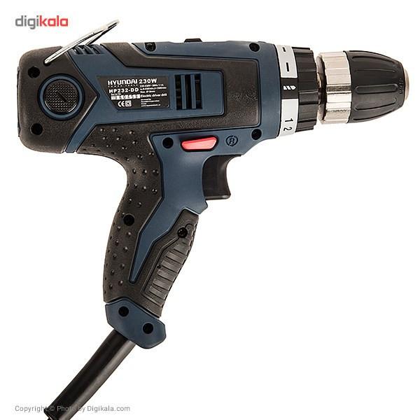 محصولی که مشاهده میکنید دریل پیچگوشتی مدل(HP232-DD) و از تولیدات شرکت «هیوندای» (Hyundai) است. این دریل از دو حالت کارکرد بهره میبرد. یکی حالت دور پایین، که سرعت گردشی برابر با صفر تا 450 دوربردقیقه دارد و مناسب استفاده بهعنوان پیچگوشتی بوده و یکی حالت صفر تا 1500 دوربردقیقه که برای استفاده بهعنوان دریل، قابل استفاده است. این دریل 230 وات توان دارد که با این میزان توان، برای استفاده کارهای روزمره و معمولی کاربرد دارد. وزن کم و ابعاد مناسب این دریل مزیتی است که این امکان را بهکاربر میدهد تا دریل را بهراحتی دردست بگیرد. از دیگر ویژگیهای این دریل میتوان به قابلیت چپگرد و راستگرد بودن آن اشاره کرد که بسته بهنوع کار، میتوان آن را روی وضعیت دلخواه قرار داد. شرکت هیوندای در طراحی این دریل از یک سه نظام 10 میلیمتری استفاده کرده که این قابلیت را به دریل میدهد تا از آن بتوان برای سوراخکاریهای با همین قطر در فلزات استفاده کرد. همچنین این دریل از گیربکسی دوضعیتی بهره میبرد که قابلیت تنظیم گشتاور در شانزده حالت مجزا را دارد.