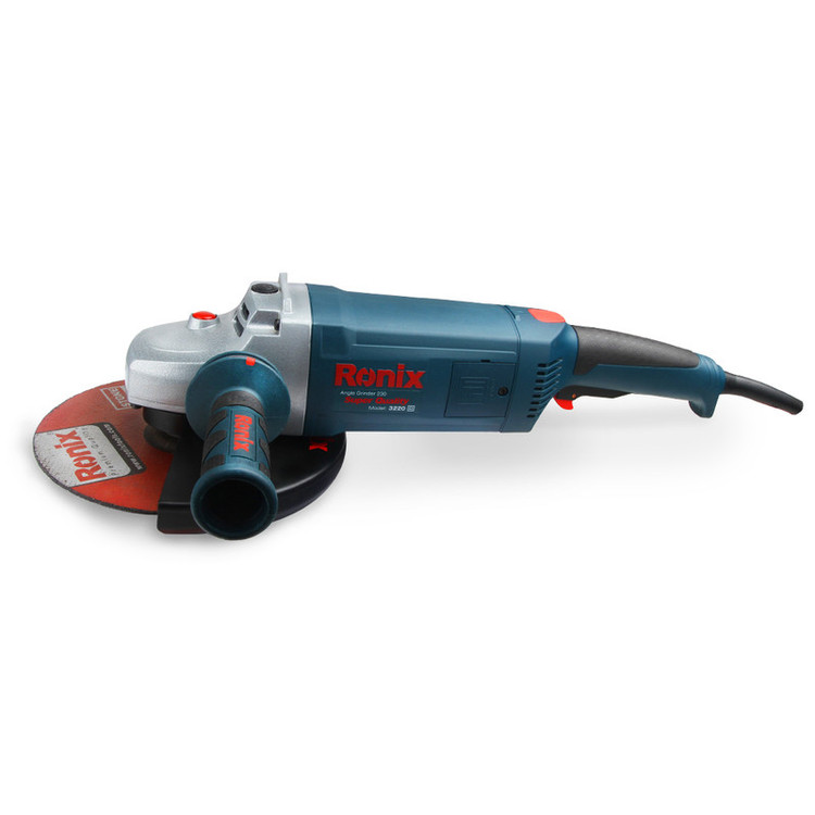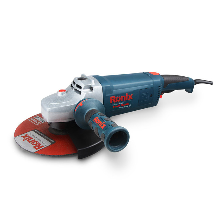 فرز سنگبری پیش روی شما یکی از محصولات تولیدی شرکت معروف «رونیکس» (Ronix) است. این دستگاه مدل «3220» نام دارد و از سرعت چرخشی برابر 6000 دور بر دقیقه برخوردار است. این فرز باتوجه به سرعتی که دارد برای برش سنگ مورد استفاده قرار میگیرد و این میزان سرعت برای برش سنگها بهترین است. قطر صفحهی مناسب برای این دستگاه 230 میلیمتر است. شرکت رونیکس برای این دستگاه یک کابل بلند 4 متری با کیفیت طراحی کرده است و برای راحتی بیشتر کاربر در حین کار، یک دستهی کمکی به همراه آن عرضه میکند. این دسته در سه سمت دستگاه قابل نصب بوده و طراحی مناسبی دارد. از دیگر مزایای این دستگاه میتوان به وجود قفل اسپیندل و محافظ صفحهی آن اشاره کرد که ایمنی بیشتری به دستگاه بخشیده است. قسمت انتهایی این فرز سنگبری نیز قابل چرخش بوده و کاربر میتواند با فشار دکمهی آن این کار را انجام دهد. این دستگاه وزنی حدود 5.2 کیلوگرم دارد.