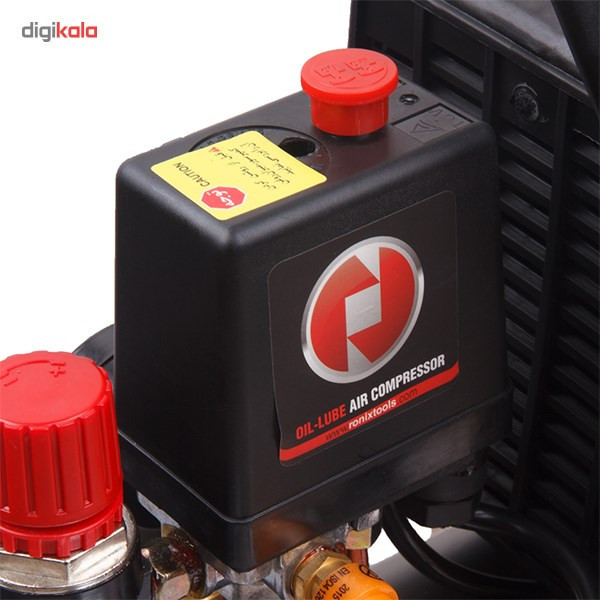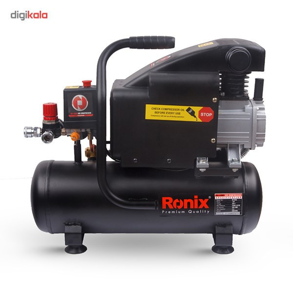 بهرهگیری از تجهیزاتی مانند پمپ و کمپرسور که موجب حرکت سیالات میشوند کمک شایانی به بشر کرده است. این تجهیزات، نیروی مورد نیاز برای مکش یا رانش سیال را ایجاد میکنند و موجب حرکت آن با سرعت و فشاری مشخص میشوند. بیشترین میزان استفاده از کمپرسورهای هوا در صنعت است اما این تجهیزات با قدرتهای کمتر نیز به منظور انجام کارهای نیمه صنعتی مورد استفاده قرار میگیرند. محصولی که در تصویر مشاهده میکنید کمپرسور مدل «RC-1010» است که توسط شرکت «رونیکس» (Ronix) تولید میشود و توانی برابر 746 وات دارد و برای مصارف صنعتی و غیر صنعتی مناسب است. منبع تغدیهی این کمپرسور برق 220 ولت شهری بوده و قادر است جریانی با حداکثر فشار 116 پی اس آی ایجاد کند. این کمپرسور ظرفیتی برابر 10 لیتر دارد و دبی آن 200 لیتر بر دقیقه است. این محصول دارای فشارسنج بوده و میزان فشار را به خوبی نمایش میدهد. یکی از نقاط قوت کمپرسور در قسمت خروجی آن است و از دو نازل خروجی بهره میگیرد. در این صورت میتوانید دو جریان خروجی هوایی داشته و با کمک شیری که در بالای آن قرار دارد دبی خروجی را کنترل کنید. در صورتی که فشار هوای داخل مخزن بیش از حد شود، سوپاپ اطمینانی وجود دارد که با خروج هوا میزان فشار را سریعا کاهش میدهد. این محصول دارای کلید استارتی با تکنولوژی LEFCO بوده و به صورت چرخشی عمل میکند. به همراه این کمپرسور یک روغن روانکاری نیز عرضه میشود.
