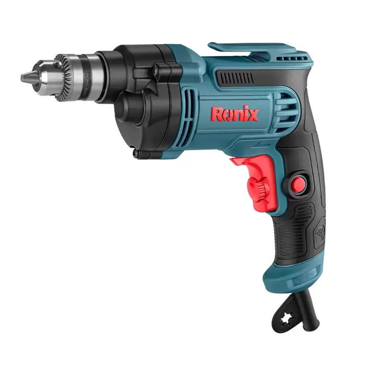 دریل برقی 2116 رونیکس، دارای نیمتنه فلزی است و با موتور پرقدرت 500 وات کار میکند. همچنین، مجهز به سهنظام دوتکه مستحکم، 10 میلیمتری و آچاری است که بر عملکرد دستگاه تاثیرگذار است. این ابزار برقی کاربردی، با برخورداری از اهرم چپگرد/راستگرد میتواند در کنار عملیات دریلکاری به عنوان پیچگوشتی برقی نیز کار کند. کلید اصلی این دریل، ضد غبار و دیمردار بوده و سرعت چرخش مته را تنظیم و کنترل میکند. افزونبراین، قفلکن کلید، دریل را بعد از روشنشدن در حالت روشن نگه میدارد تا بتوانید آن را در مدتزمانی طولانی و بدون نیاز به فشردن دائمی کلید اصلی، روشن نگه دارید.