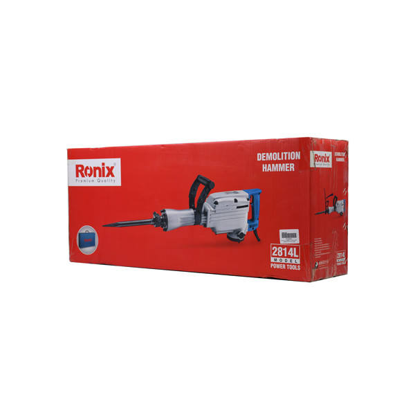 چکش تخریب رونیکس مدل 2814L با قدرت ضربه 45 ژول با وزن 14 کیلوگرم دستگاه بسیار کاربردی جهت تخریب است. موتور قدرتمند آن دارای توان 1600 وات و مجهز به سیلندر و پیستون خیلی قدرتمند همراه با عمر طولانی می باشد. از قابلیت های دستگاه چکش تخریب رونیکس می توان به دسته جانبی قابل تنظیم، قلم گیر 6 گوش، عملکرد چکشی، سیستم روغنی، دسته جانبی گردان، کلید با کیفیت ضد غبار و کیف فلزی مقاوم نام برد. لازم به ذکر است در داخل قطعات داخلی دستگاه از بلبرینگ های ضد غبار و اورینگ و پکینگ های مقاوم در برابر حرارت جهت بالا بردن عمر دستگاه استفاده شده است. این دستگاه مجهز به سنبه های میانی، ضربه زن، شاتون و سیلندر می باشد که تمامی این موارد از بهترین آلیاژ و مواد اولیه ساخته شده و موجب عملکرد بهینه قسمت مکانیکی دستگاه حین تخریب کاری شده است. چکش تخریب رونیکس دارای کیف مقاوم BMC و 2 عدد قلم پنج شیار SDS-MAX می باشد.