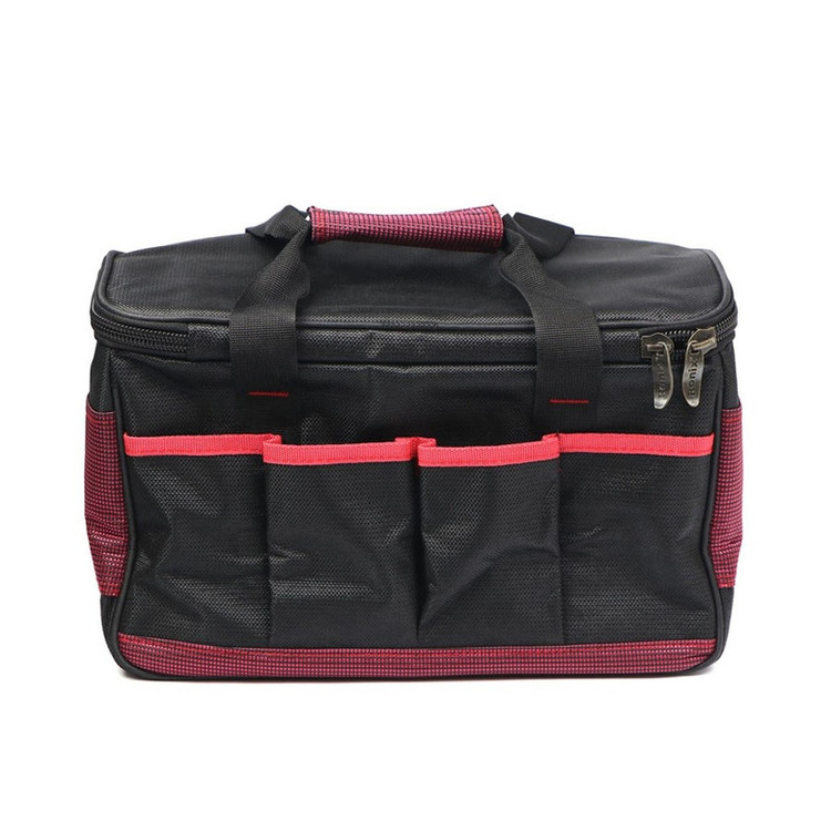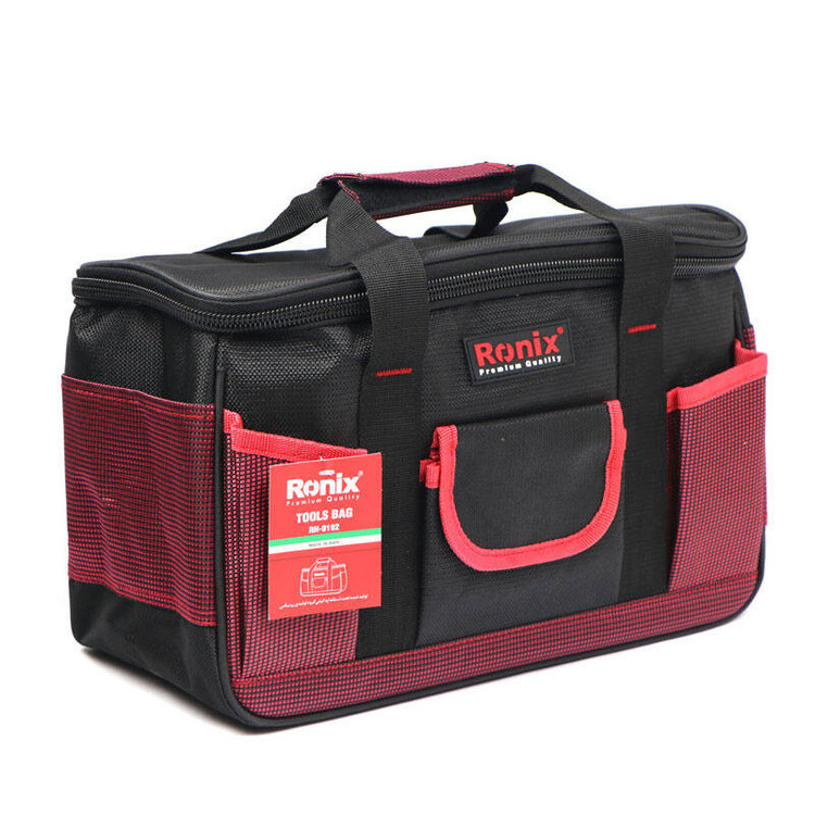 دارای دستگیرهی پارچهای چسبی برای نگهداری راحت کیف/طول دستگیره : 11.5 سانتیمتر/دارای چهار عدد پایهی پلاستیکی و کفی قالبی در کف کیف