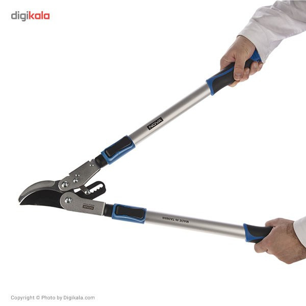 برای بریدن شاخههای درختان از قیچیهای شاخهزن هم استفاده میکنند. مدل NTS2370، نمونهای از این ابزار است که شرکت «نووا» (Nova) آن را تولید و به بازار عرضه میکند. تیغهی این قیچی بسیار برنده است و بهراحتی شاخهی درختان را برش میدهد. وزن این محصول بسیار مناسب است و با توجه به فرم ساخت دستههای قیچی، میتوانید شاخههایی را هم که در ارتفاع بالاتر قرار دارند، برش دهید. نووا قیچی شاخهزن مدل NTS2370تولید کرده که به کمک آن میتوانید شاخههایی تا قطر 50 میلیمتر را برش دهید. تیغههای این محصول از فولاد کربنی ساخته میشوند و مقاومت بالایی در برابر فشار و خوردگی دارند. این قیچی دارای دو دستهی تلسکوپی آلومینیومی است. طول دستههای این ابزار در چهار حالت بین 48 تا 77 سانتیمتر قابل تنظیم است. برای نگهداری از گیاهان نیازمند به داشتن اطلاعات در این زمینه و تهیه وسایل و ابزار مناسب هستیم. یک نهال چه درزمانی که در داخل گلدان است و چه موقعی که در باغچه یا باغ کاشته شده، نیاز به رسیدگی مداوم دارد. آب و خاک مطلوب در کنار نور مناسب آفتاب به نهال طراوت و شادابی میبخشد. پس از رشد نهال و تبدیلشدن آن به درخت، رسیدگی و هرس کردن آن باید موردتوجه قرار گیرد. بریدن شاخههای زائد در شادابی و طراوت درخت تأثیر بسزایی دارد. عدم رسیدگی بهموقع به این موضوع، موجب ناآراستگی و توقف رشد صحیح درخت میشود. ضمنا برش صحیح شاخهها بهنحویکه به درخت لطمهای نرسد نیز باید در نظر گرفته شود. برای این کار از انواع قیچی شاخهزن استفاده میکنیم. نووا نمونهای از این ابزار را با عنوان NTS2370 ساخته است. این محصول با تیغههایی از فولاد کربنی و دستههای آلومینیومی تلسکوپی ساخته میشود.