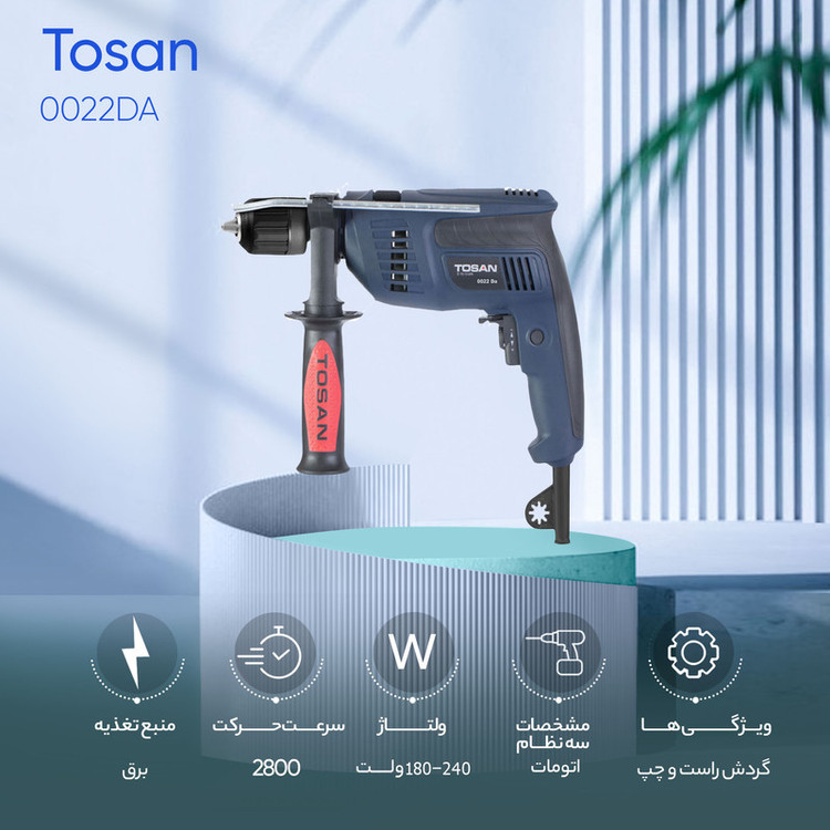 دارای سیستم ضربه زن قوی دارای تنظیم کننده دور(دیمر) مجهز به شستی چپگرد,راستگرد دارای شستی قفل کن سوئیچ در حالت روشن کابل برق 2 متری استانداردها ی اخذ شده: TUV- GS لیست لوازم جانبی:خط کش تنظیم عمق/ دسته کمکی