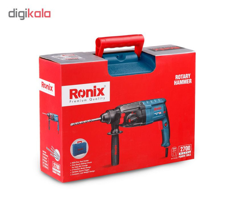 چنانچه نیاز به سوراخکاری و تخریب مصالح ساختمانی از قبیل دیوار را دارید، باید از دریل بتنکن استفاده نمایید. بتنکنها عمدتا جهت سوراخکاری دیوارهای سخت و مقاوم استفاده میگردد. افرادی که کارشان سوراخکاری مداوم دیوارهای بتنی است، استفاده از بتنکن را به علت قدرت و سهولت آن ترجیح میدهند. دریل بتن کنها با توجه به کاربردشان دارای انواع مختلفی هستند. برای تخریب و سوراخکاریها حجیم از دریل بتن کنهای سنگین و کارهای نیمه سنگین از بتن کنهای سبکتر استفاده میشود. دریل بتن کن رونیکس مدل 2700 یک بتن کن سبک با وزن 3 کیلوگرم محسوب میشود. این دستگاه توانی معادل 850 وات دارد که بیشتر در برق کشی ساختمان ، دکوراسیون داخلی ، تاسیسات ساختمان و.. مورد استفاده قرار میگیرد. سرعت دریل بتن کن 2700 رونیکس 0 الی 4000 دور در دقیقه میباشد. همچنین این دستگاه قابلیت استفاده از مته گردبر ا در مصالح ساختمانی را دارد. برای نصب مته ، قلم و گردبر به این محصول باید در نظر داشته باشید سه نظام این دستگاه از نوع SDS-Plus است و تنها ابزارهایی قابل نصب بر روی این دستگاه میباشند که دنباله آن حتما 4 شیار باشد. قفل سوئیچ تعبیه شده روی دستگاه کار با آن را راحتتر کرده است و کاربر میتواند بدون نگه داشتن کلید پاور دستگاه، آن را در حالت روشن قرار دهد. این دستگاه از قابلیت چرخش به سمت راست و چپ برخوردار است. این ویژگی در مواقعی که مته در سطحی سخت، گیر میکند کمک زیادی به خارج کردن آن خواهد کرد. همچنین جهت راحتی کاربر، دسته گردان 360 درجه نیز روی این بتن کن نصب شده است. شرکت رونیکس به همراه این دریل بتن کن یک کیف BMC مقاوم و نیز سه عدد مته مته های 4شیار سایز 150x7 ، 150x8 ، 150x10 ، 200x12 میلی متر رایگان باکیفیت ،جهت سوراخکاری و تخریب ارائه کرده است. بی شک دریل بتن کن رونیکس یکی از باکیفیت ترین و پر فروش ترین دریل بتن کن های چهار شیار میباشد که توسط این شرکت عرضه میشود