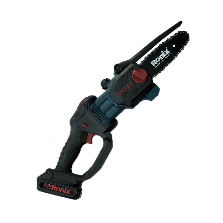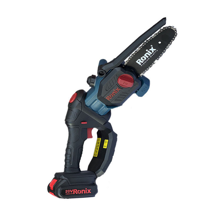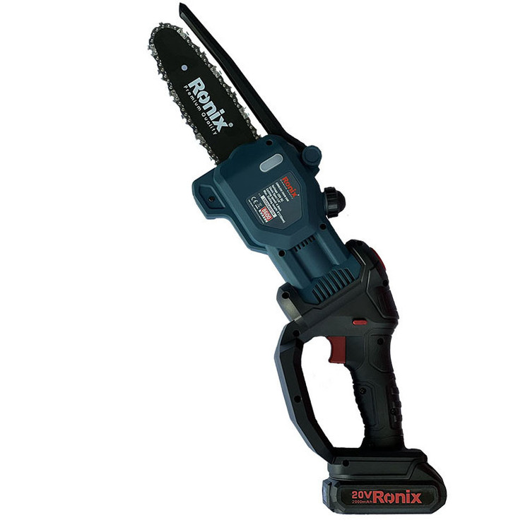 ارخ زنجیری شارژی رونیکس یک محصول فوق العاده برای هرس کردن . برش چوب می باشد . این اره با تیغه 15 سانتی به همراه باتری 20 ولتی رونیکس قدرت قابل قبولی را برای برش دادن شاخه ها فراهم می آورد . این دستگاه با دو باتری عرضه می شود . ار دیگر ویژگی های این دستگاه چرخش 45 درجه ایی دسته در دو طرف می باشد . در روی سر این اره مخزن روغن وجود دارد که به ضورت خودکار زنجیر را روغن کاری می نماید و نیز روغن برای بار اول نیز در بسته بندی محصول وجود دارد . از دیگر مزیت های این دستگاه می توان به طراحی کلیدی در بغل دستگاه برای سفت و یا شل کردن زنجیر اشاره نمود .