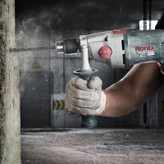 دریل چکشی مدل 2220 شرکت رونیکس است که علاوه بر قدرت مناسب در حالت چکشی، بهصورت معمولی نیز میتوان از آن استفاده کرد. این مدل با ابعاد 22 × 7 × 34 سانتیمتر و وزن 3.7 کیلوگرمی تولیدشده است. دارای قابلیت کنترل سرعت و با دو حالت در سرعت گردش به میزان 0-1100 یا 0-2800 دور بر دقیقه گردش میکند که جهت این گردش با انتخاب شما بهصورت چپگرد یا راستگرد خواهد شد. این دریل با برق 230 ولت و قدرت 1050 وات برای کارهای صنعتی نیز مناسب است. حداکثر قابلیت سوراخ در مصالح، چوب و فلز به ترتیب 16، 30 و 13 میلیمتر است طراحی ارگونومیک، یک دسته کمکی باقابلیت گردش 360 درجه و کابل برق 3 متری کمک بیشتری برای سهولت کار و انتخابی مناسب برای خرید شما است. اگر تابهحال از دریل استفاده کرده باشید و خواسته باشید دیوار، سقف و یا جسمی از مواد بتنی را سوراخ کنید، حتما از متههای الماسه استفاده کردهاید. این متهها از جنسی مقاوم و مخصوص سوراخکاری چنین مواردی ساخته شدهاند. اما گاهی سختی و مقاومت مصالح بهاندازهای است که مجبورید به استفاده از دریلی هستید که دارای حالت چکشی یا ضربهای نیز باشد. این قابلیت باعث میشود که مته ضمن چرخش به مواد و مصالح موردنظر ضربههای با سرعت و تعداد بالا وارد کند تا سوراخکاری بهتر و سریعتر انجام شود و شما علیرغم احساس لرزش ناخوشایند هنگام کار با دریل، سرعت عمل بهتری داشته باشید. دریلهایی که حالت چکشی را دارند بسیار زیاد، متنوع و در ابعاد مختلفی هستند. طبیعتا تهیه دریلی که هم برای حالت عادی و هم برای کار در حالت چکشی بتوان از آن استفاده کرد، مقرون بهصرفهتر است.