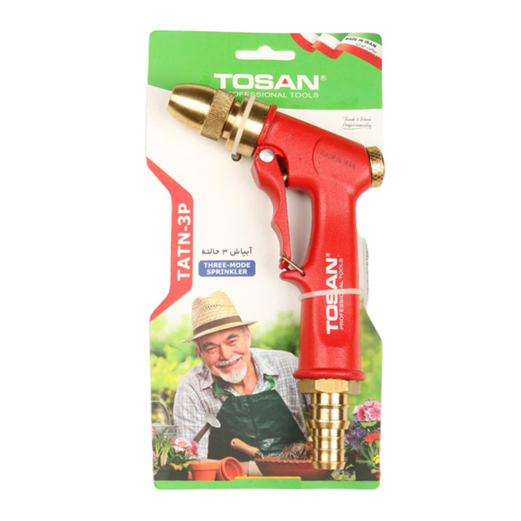آبپاشها کاربردهای فراوانی دارند. این محصولات با اتصال به شلنگ و یا شیر آب، میتوانند آب را به شکلی مناسب خارج کنند. در بسیاری از آبپاشها اهرمی وجود دارد که وظیفهی قطع و وصل کردن جریان آب را بر عهده دارد. با واردکردن فشار به این اهرم جریان آب از آن خارج میشود؛ این موضوع مزیت بزرگی محسوب میشود؛ زیرا هنگامیکه با این محصول کار نمیکنید فشاری به اهرم آن وارد نمیشود و جریان آب قطع میشود. در این صورت در مصرف آب صرفهجویی شده و دیگر نیازی ندارید که بهتکرار شیر آب را ببندید و بازکنید. در بعضی از آبپاشها حالت جریان خروجی آب توسط کاربر قابل تنظیم است. آبپاش مدل «TATN-3P» محصولی دیگر از شرکت «توسن» (TOSAN) محسوب میشود. این آبپاش دارای 3 حالت است و با توجه به نیازتان میتوانید یکی از حالتها را انتخاب کنید. بدنهی این محصول از جنس برنج و با روکش ساتن ساخته شده است و در برابر زنگزدگی مقاومت بسیار بالایی دارد. دستهی فلزی این محصول نیز استحکام بالایی به آن بخشیده است. برای استفاده از این آبپاش کافی است آن را به شلنگ متصل کرده و برای اطمینان بیشتر، آن را با بست محکم کنید. شرکت توسن نزدیک به دو دهه است که در تولید و عرضهی ابزارآلات باغبانی فعالیت میکند. محصولات این شرکت علاوهبر کیفیت رضایتبخش از قیمت مناسبی نیز برخوردارند.