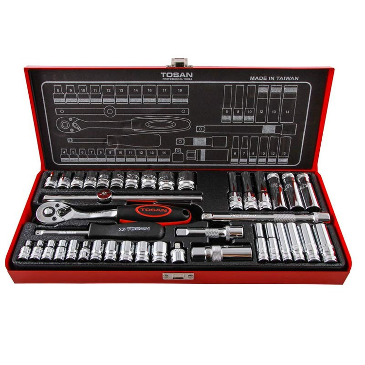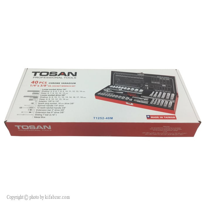 جعبه بکس 40 پارچه توسن مناسب کارهای سنگین و صنعتی برای مدت طولانی ساخته شده از فولاد کروم وانادیوم سخت کاری شده و حرارت داده شده به روش ریخته گری شده به منظور قدرت بیشتر سطح کاملاً پولیش شده آبکاری شده ساخت تایوان