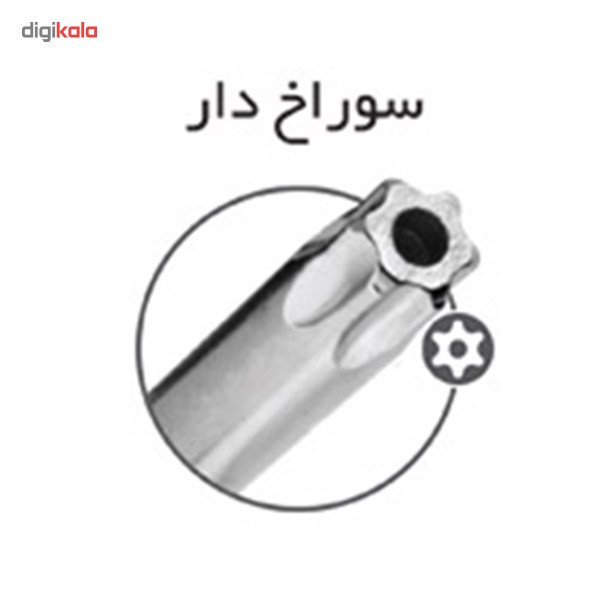 آچار آلن ستارهای توخالی مدل «NTK 1140» مجموعهای 8 عددی از آچارهایی در سایزهای T30، T27، T25، T20، T15، T10، T9 و T40 است. این آچار برای باز و بسته کردن پیچ و مهرههای ستارهای و ستارهای توخالی استفاده میشود. درصورتیکه برای باز و بسته کردن پیچ و مهرههای ستارهای به دنبال ابزار مناسبی هستید و مایلید بهجای تهیهی تعدادی آچار ستارهای از یک مجموعهی آچار استفاده کنید، تهیهی این محصول را به شما پیشنهاد میکنیم. در ساخت این مجموعه آچار مشتی، از آلیاژ کروم و وانادیوم استفاده شده است تا مقاومت مجموعه را در برابر فشار، ضربه و حرکات پیچشی افزایش دهد. به دلیل فرایند سختکاری که در ساخت این محصول بهکاررفته، سری این آچارها کمتر دچار خوردگی میشوند. بدنهی آچار مدل NTK 1140 از پلاستیک ساخته شده است. از دیگر نقاط قوت این آچار میتوان به نحوهی قرارگیری آنها بهصورت فشرده در کنار هم اشاره کرد. گیرهای که روی این آچار قرار گرفته، حمل و اتصال آن را به کمر در زمان کار آسانتر میکند. دستهی کوتاه این آچار عملکرد آن را در فضاهای کم آسان کرده است. آچارها در گونههای بسیار متنوعی طراحی و ساخته میشوند، مانند فرانسه، رینگی، ستارهای، آلن، لولهگیر، بکس و تخت. همچنین این ابزار در اندازه و ابعاد مختلفی تولید میشوند. شرکتهای زیادی به تولید این ابزار کاربردی مشغول هستند. «نووا» یکی از این شرکتهاست که مجموعه آچار مدل NTK 1140 را با کیفیت مطلوبی ساخته است. این مدل مجموعهای از آچارهای ستارهای توخالی است که 240 گرم وزن دارد.