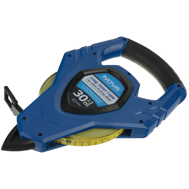 متر فوق یکی از محصولات تولیدی شرکت «نووا» (Nova) بوده که تحت عنوان مدل «NTT1521» به بازار عرضه میشود. این محصول دارای یک نوار 30 متری بوده که ساختاری انعطافپذیر دارد. مسلما جمع کردن نواری با طول 30 متر کمی دشوار خواهد بود، به همین منظور از یک دستگیرهی تاشو برای جمع کردن نوار استفاده شده است. یکی از ویژگیهای این نوار انعطاف بسیار بالای آن است که موجب میشود کاربر با خم کردن آن طول بخشهای منحنی و زاویهدار را نیز اندازهگیری کند. این انعطافپذیری از شکستگی و ترک خوردن نوار نیز جلوگیری میکند. این نوار برحسب واحد متریک درجه بندی شده است و اعداد در هر دوسمت نوار درج شدهاند. شرکت نووا برای این نوار عرض کم 13 میلیمتری را درنظر گرفته است. این نوع طراحی مانع از افزایش وزن متر شده است. این متر با نام متر مهندسی نیز شناخته میشود و برای قرار دادن آن روی محل مورد نظر دارای یک پایهی مخصوص است. از دیگر ویژگیهای این متر میتوان به وجود گیره در بخش ابتدایی نوار اشاره کرد که کار را برای کاربر آسانتر میکند.