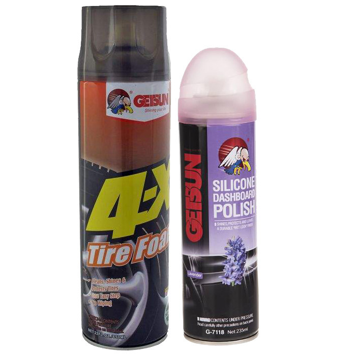 اسپری تمیز کننده تایر گتسان مدل G1008-7118 به همراه اسپری واکس داشبورد