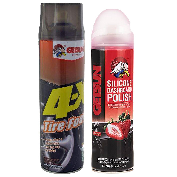 اسپری تمیز کننده تایر گتسان مدل G1008-7098 به همراه اسپری واکس داشبورد