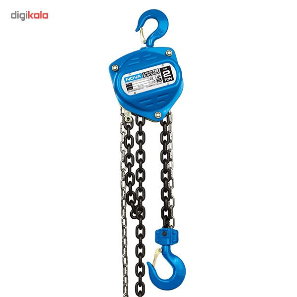 بالابر زنجیری مدل NTC-2804 محصولی از شرکت نووا (Nova) است. این ابزار برای حمل بار مورد استفاده قرار میگیرد. این به کمک این بالابر میتوانید اجسامی تا وزن 2 تن را تا ارتفاع 3 متر بلند کرده و جابجا کنید. در تهیهی بالابر یا جرثقیل زنجیری، تناژ یا میزان تحمل وزن اهمیت بسیار زیادی دارد. این تناژ به صورت متعارف از 0.5 تن شروع میشود. بالابر زنجیری، جرثقیل دستی یا جرثقیل زنجیری نام ابزاری بالا برنده است که به همین منظور در کارگاههای مختلفی چون تعمیر و صافکاری خودرو، آهنگری و ... مورد استفاده قرار میگیرد. این ابزار از قسمتهای مختلفی مانند قلاب، هدایتگر زنجیر، ضامن، بلبرینگها، زنجیر و بدنه تشکیل شده است. برای استفاده از این ابزار باید نهایت دقت و نکات ایمنی را به کار ببندید تا ضمن انجام کار آسیبی به شما وارد نشود و جرثقیل هم معیوب نگردد. از جمله نکات ایمنی که حتما باید رعایت کنید، استفاده از دستکش است. در خصوص اصولی که باید در زمان استفاده از بالابر مورد بررسی قرار دهید این است که باید از ورود زنجیر تابدار به سیستم چرخدندهها جلوگیری کنید. در غیر این صورت ابزار آسیب جدی میبیند. با بالا کشیدن دسته یا آزاد کردن ضامن میتوانید زنجیر را به صورت آزاد بکشید. از دیگر نکاتی که باید در زمان تهیهی بالابرها مدنظر قرار دهید، وجود ضامن روی قلابها است. این ضامن تا حدودی از در رفتن قلاب جلوگیری میکند.